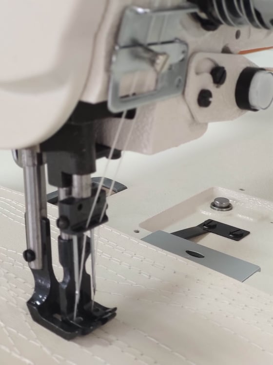 Ραπτομηχανή δίγαζη full transport μακρύκορμη 45cm κατάλληλη για τη ραφή της τέντας-ομπρέλλας-μουσαμά-διάτρητου. Στη μηχανή είναι τοποθετημένο μοτέρ 750W με ρύθμιση ταχύτητας, θέση βελόνας, πνευματικό στερέωμα, σήκωμα ποδιών. Η μηχανή διαθέτει μοχλό σηκώματος ποδιών για πέρασμα πολύ χοντρλων σημείων. Κομπλέ με ιταλική βάση και ιταλικό τραπέζι