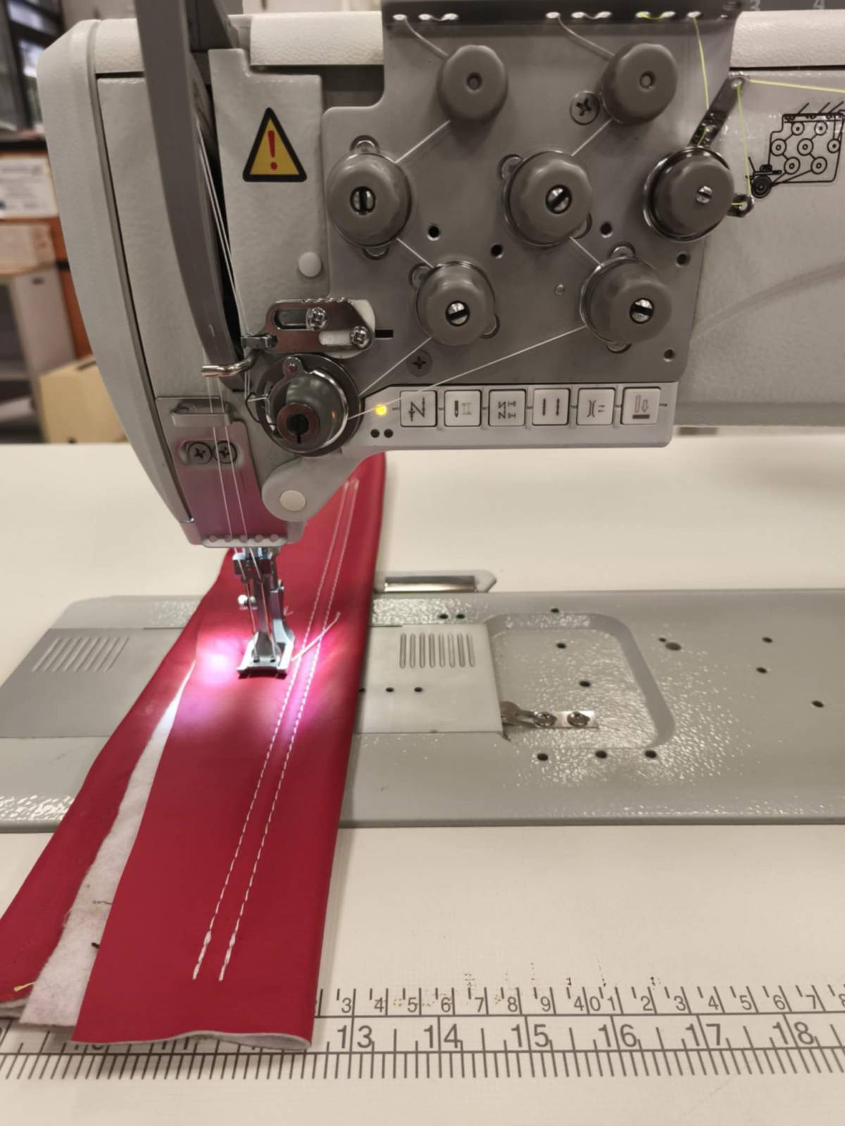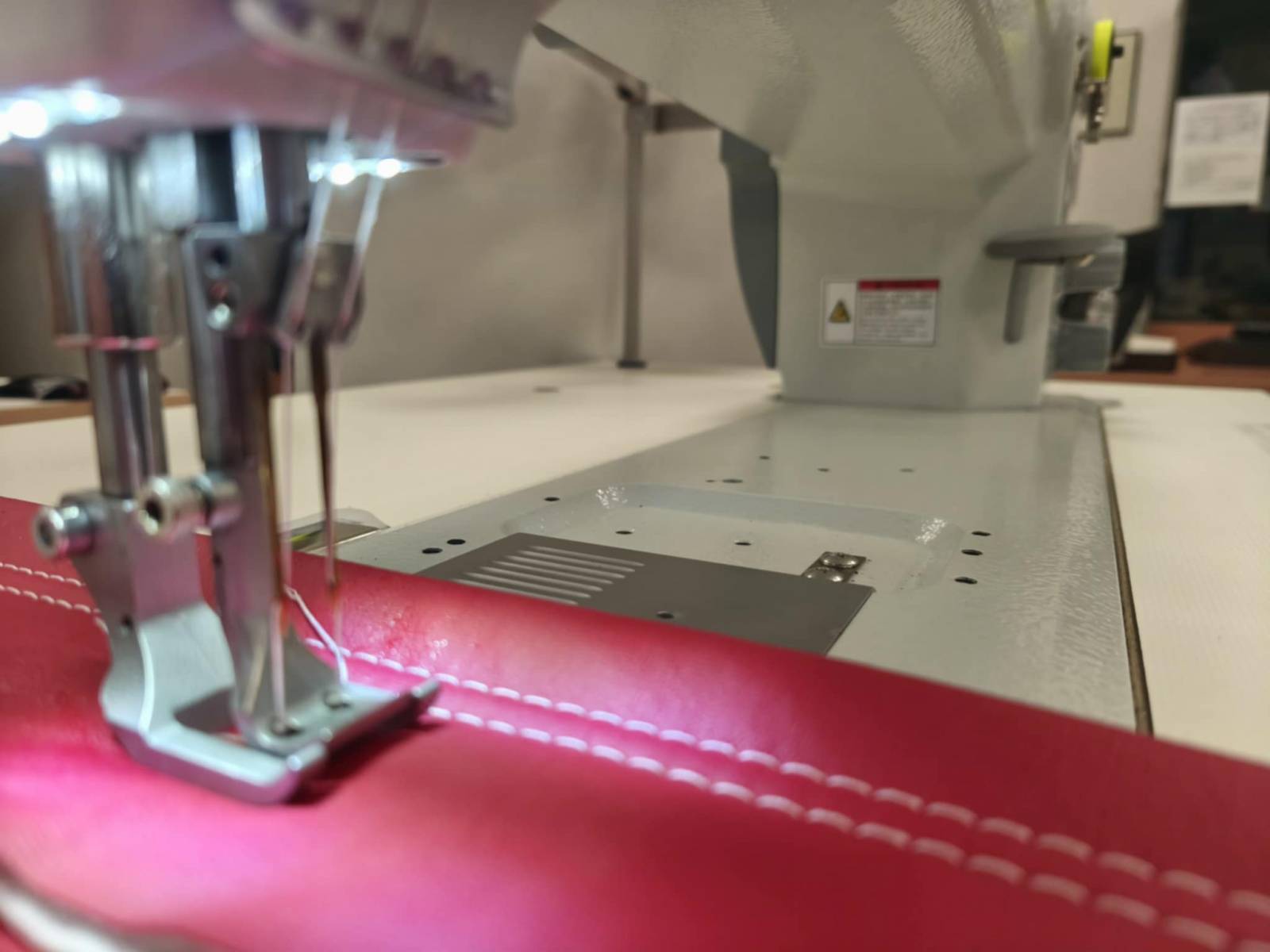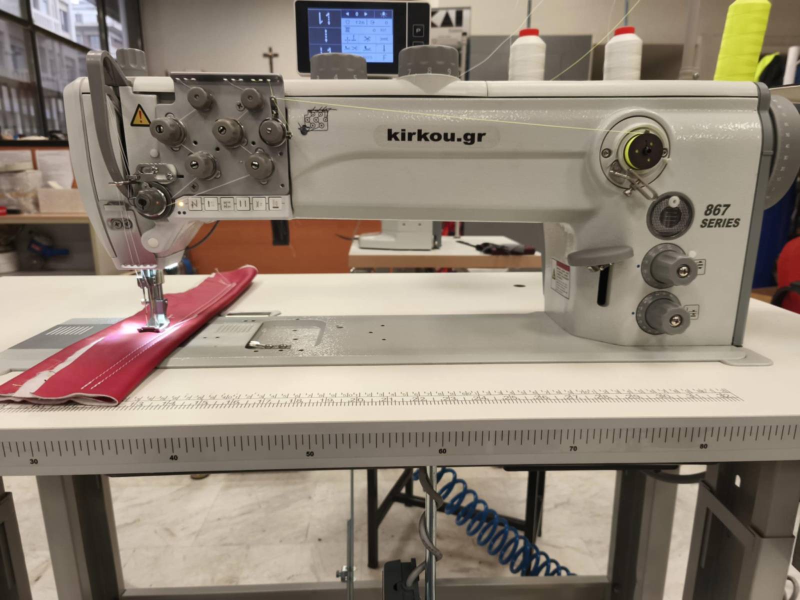 Ραπτομηχανή διβέλονη 867 series full transport,46cm άνοιγμα πεδίου, φουλ αυτόματη (κόψιμο κλωστής, στερέωμα, σήκωμα ποδιών) με XXL στρόφαλο ιδανική για τη ραφή κάθε είδους ταπετσαρίας (δέρμα, τεχνόδερμα, ύφασμα σαλονιού). Με ενσωματωμένο μοτέρ στην κεφαλή ισχύος 850W. Εξωτερικό πάνελ με οθόνη αφής για όλες τις ρυθμίσεις. Με Ιταλικό τραπέζι και Γεμανική βάση.